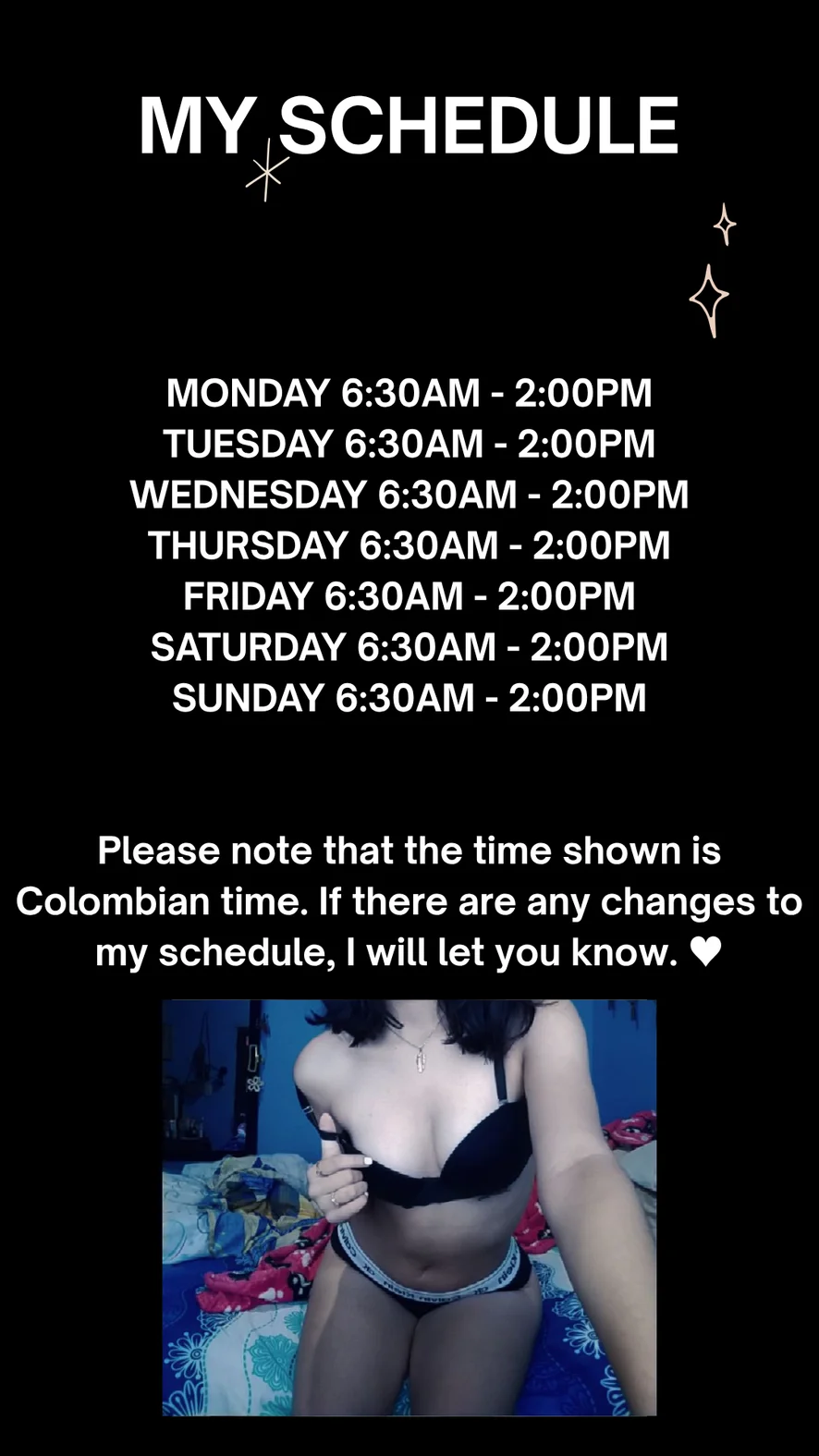 My schedule will be this Colombian time♥